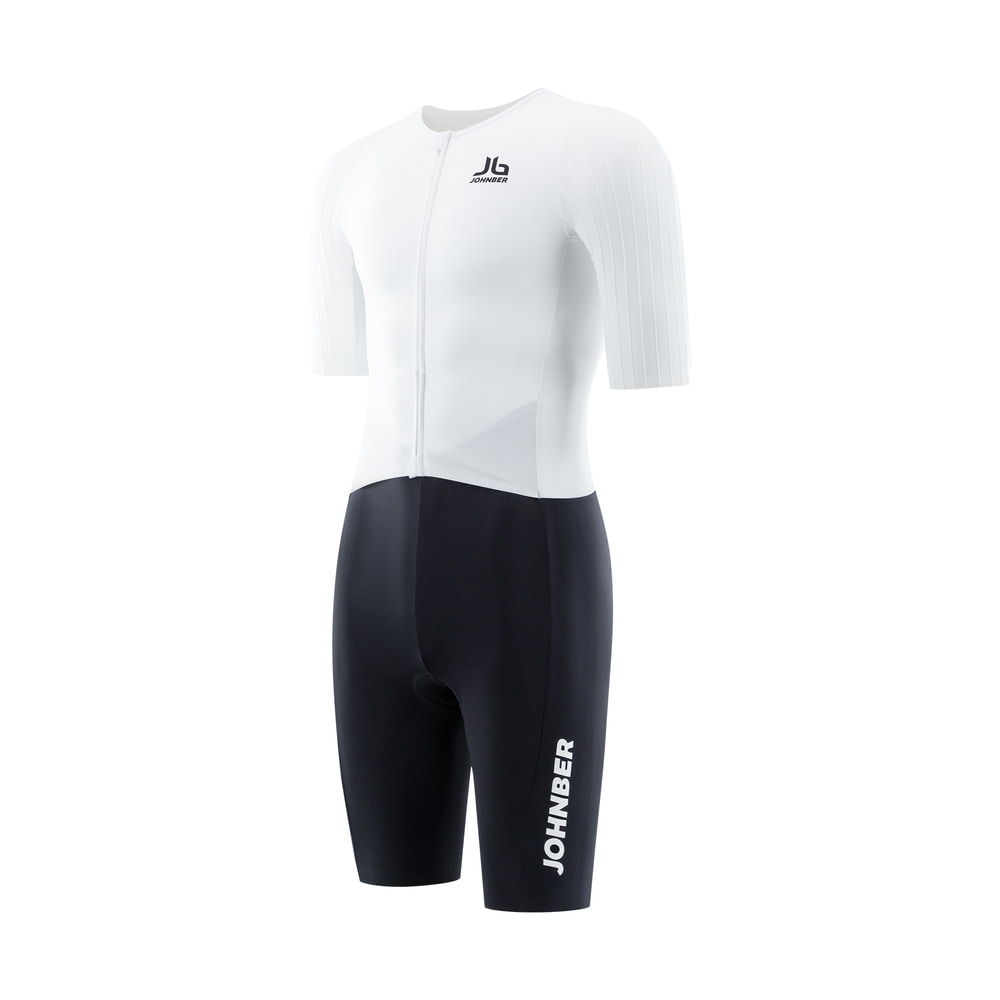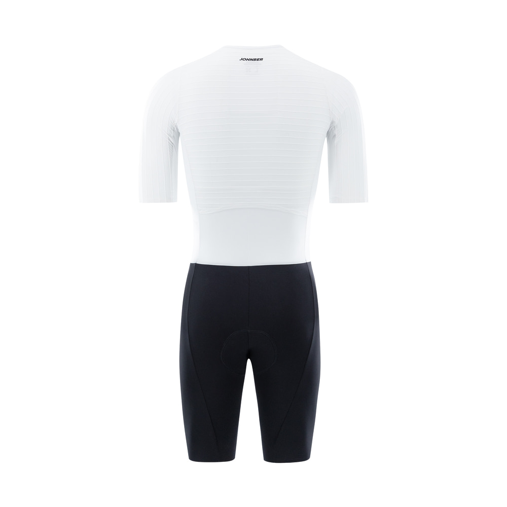 This is a Johnber high-performance, ultra-light race aero suits designed for elite athletes who push their limits to the extreme. The Thin Stem fabric, applied from the shoulders through the arms and back, minimizes air resistance when riding in the aero position at an average speed of 25mi/h.