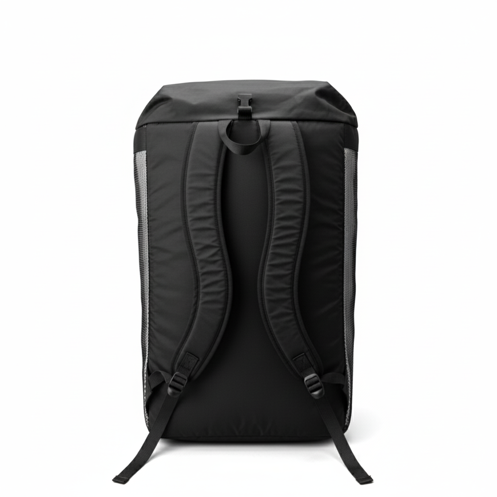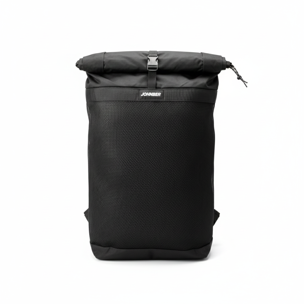 The Johnber 50L Mesh Backpack is a large-capacity, multi-sport backpack designed to store swim, bike, and run gear efficiently, comfortably, and hygienically in one place.